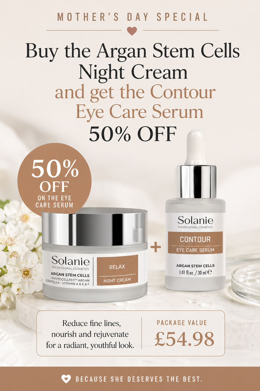 Shop › Argan Stem Cells Cream&Eye Care Serum Image 1 of 1 Argan Stem Cells Cream&Eye Care Serum Sale Price: £54.98 Original Price: £74.98 👵🏻 Mother’s Day offerBuy one and get it one 50% off⏳Limited edition Add To Cart Added! 👵🏻 Mother’s Day offerBuy one and get it one 50% off⏳Limited edition
